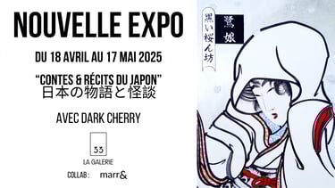 À La Galerie 33, l’art traditionnel japonais s’invite dans les murs avec une intensité rare. L’artiste réunionnais Dark Cherry y présente sa nouvelle exposition intitulée "Contes & Récits du Japon", un voyage visuel dans l’univers des légendes, des esprits et de la poésie nippone.