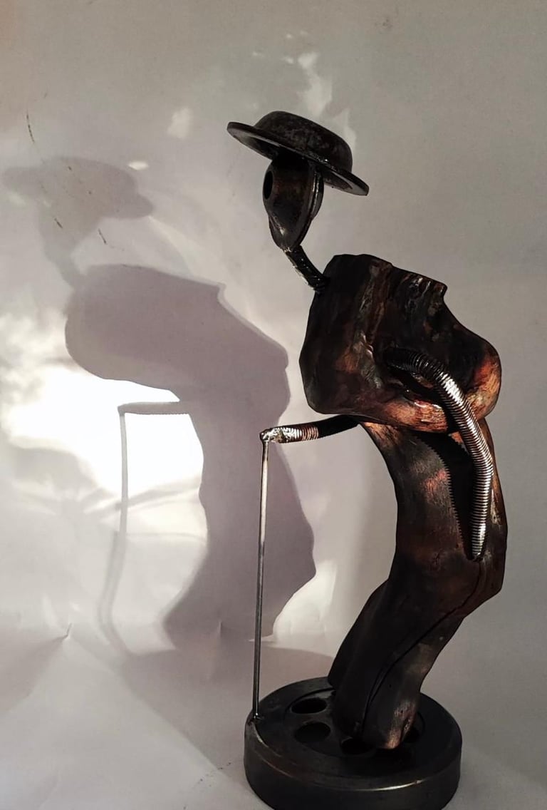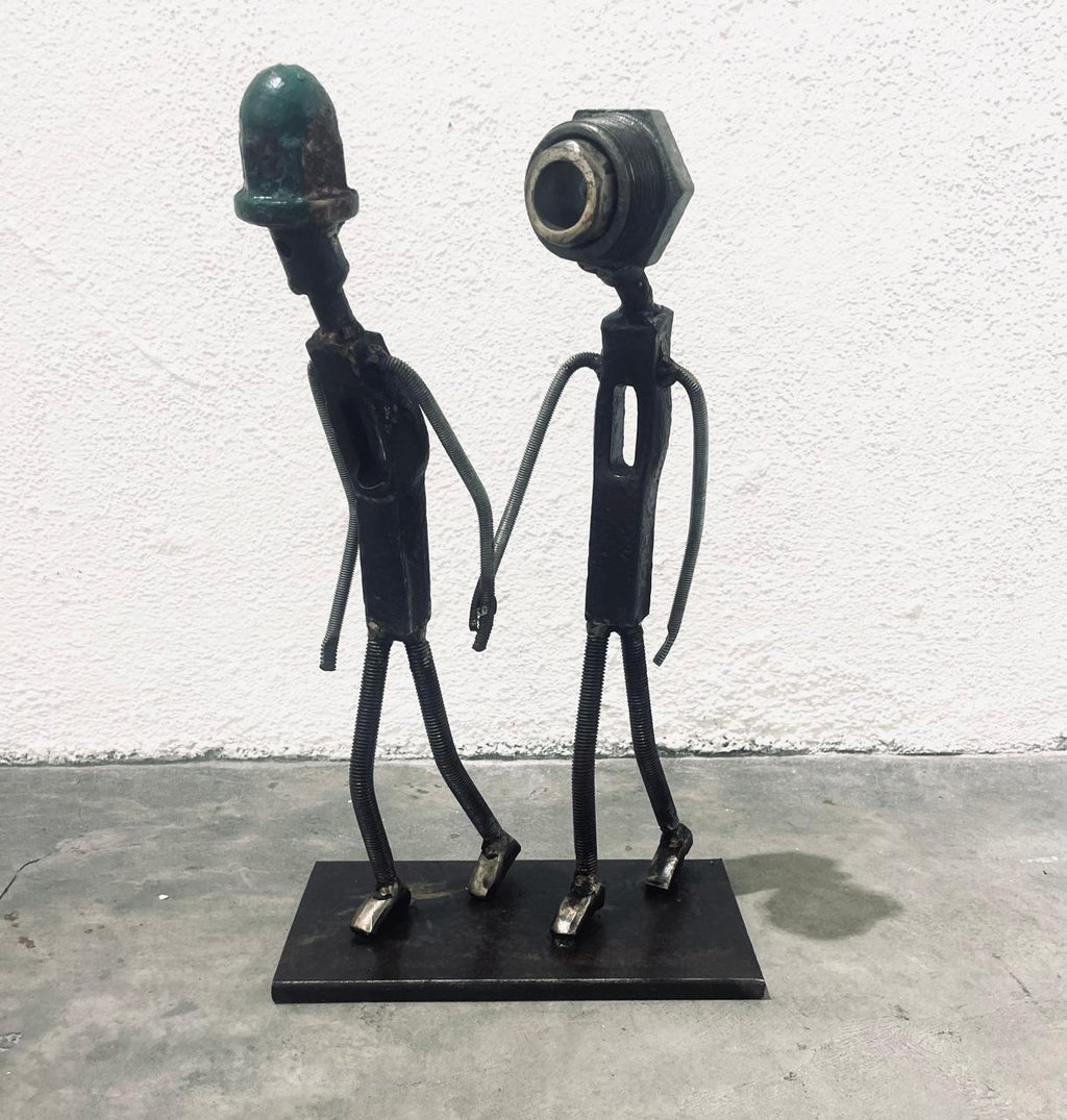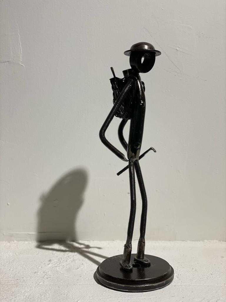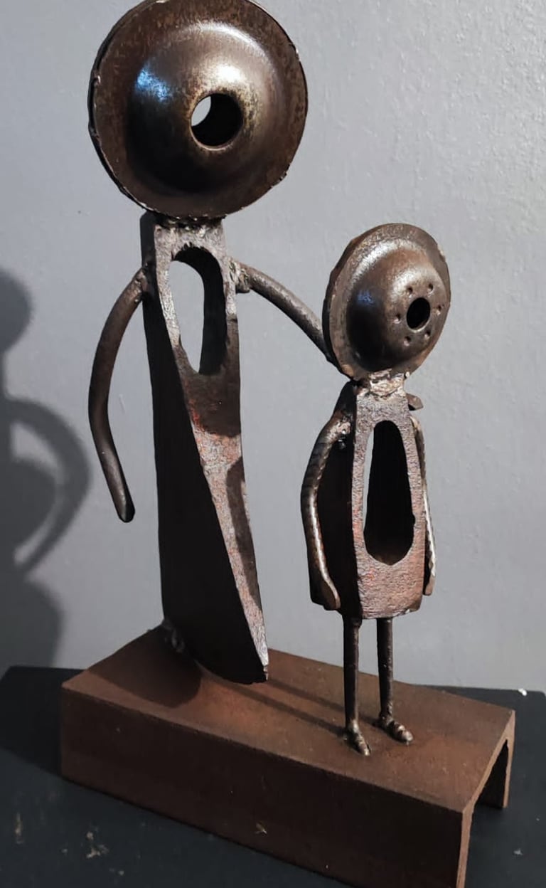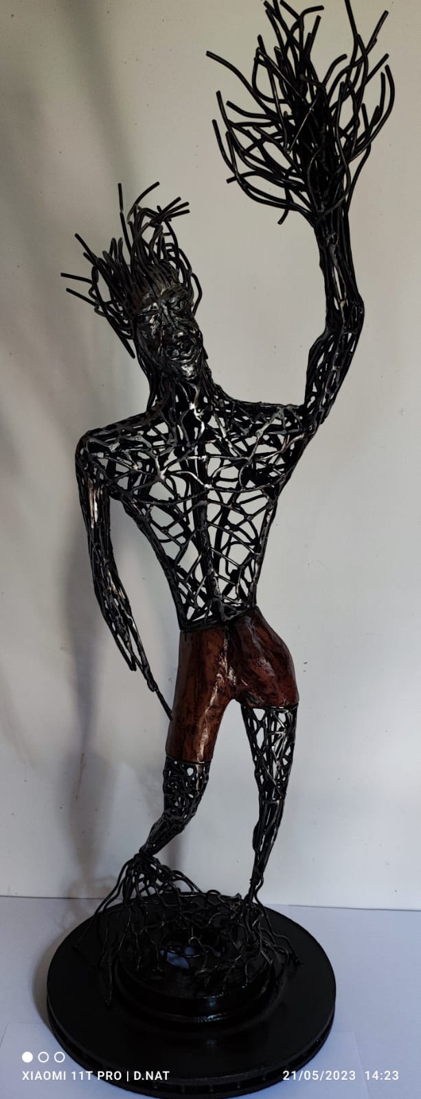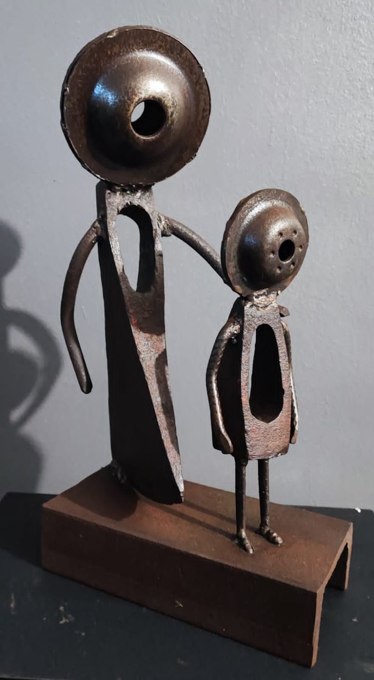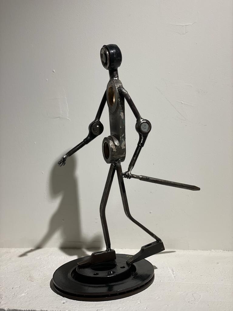 David Nativel est un autodidacte. L’artiste élevé aux côtés d’un grand-père inventeur, ferronnier et mécanicien, développe une véritable passion pour le travail de ces matériaux. Initié à la soudure par Pierre-Paul Bellemene à l’âge de 17 ans, il apprend à mêler les pièces récupérées dans des garages ou abandonnées dans la rue aux morceaux de bois trouvés sur la plage pour créer des objets insolites aux formes raides ou déstructurées. Lampes, personnages scènes de vie… ces sculptures sont toutes des pièces uniques.