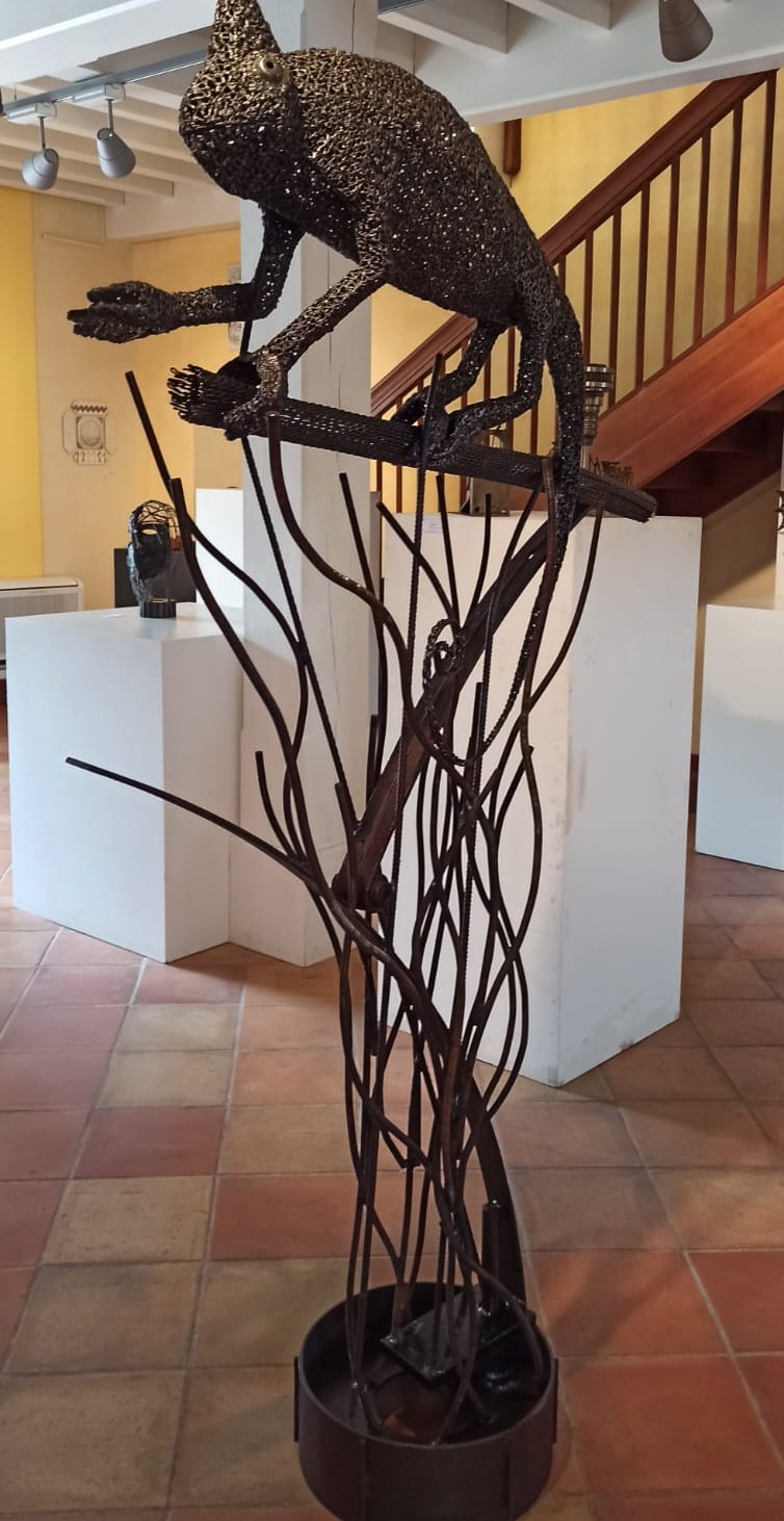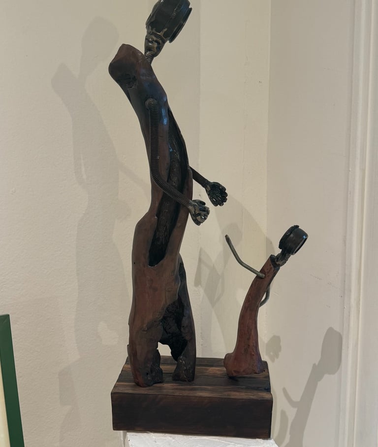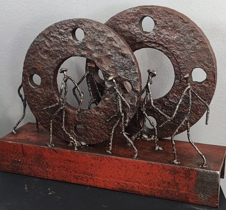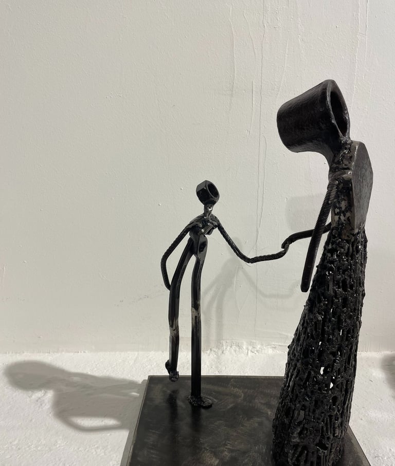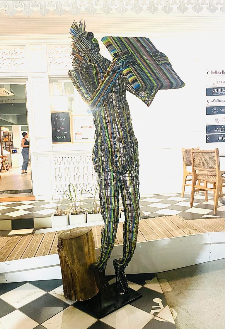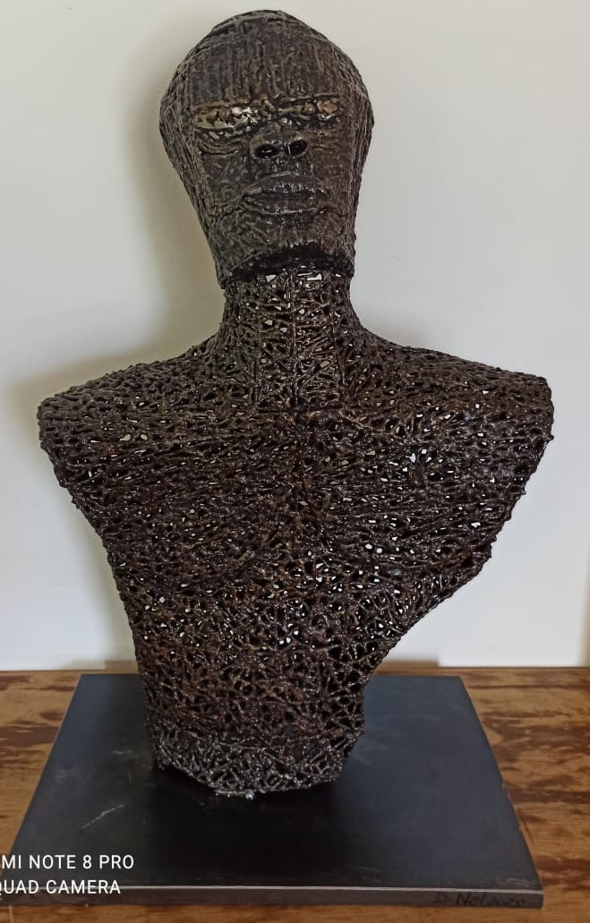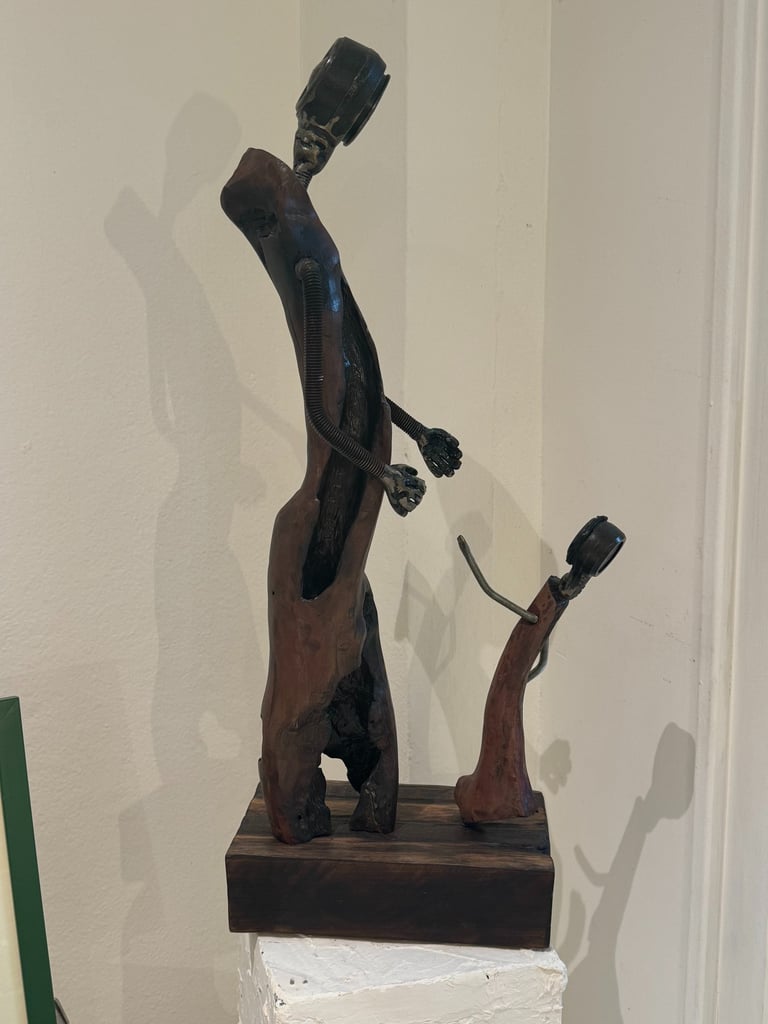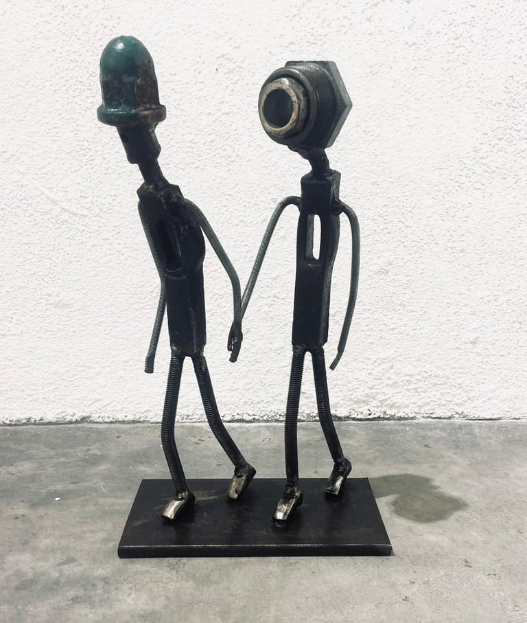 David Nativel est un autodidacte. L’artiste élevé aux côtés d’un grand-père inventeur, ferronnier et mécanicien, développe une véritable passion pour le travail de ces matériaux. Initié à la soudure par Pierre-Paul Bellemene à l’âge de 17 ans, il apprend à mêler les pièces récupérées dans des garages ou abandonnées dans la rue aux morceaux de bois trouvés sur la plage pour créer des objets insolites aux formes raides ou déstructurées. Lampes, personnages scènes de vie… ces sculptures sont toutes des pièces uniques.