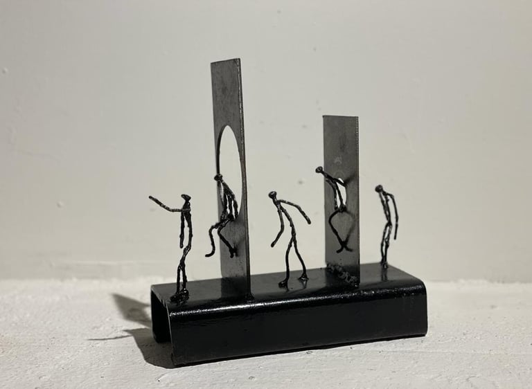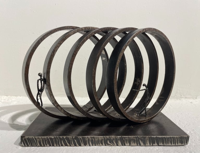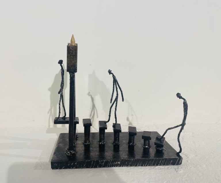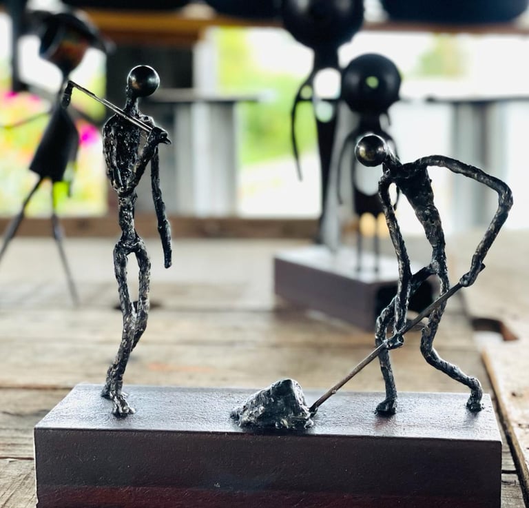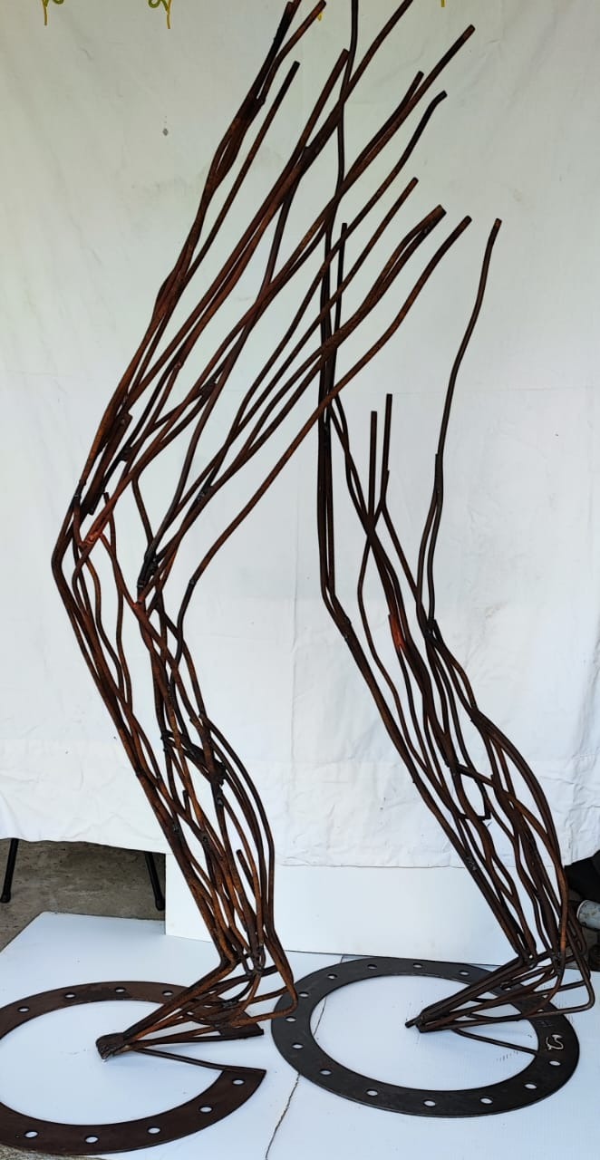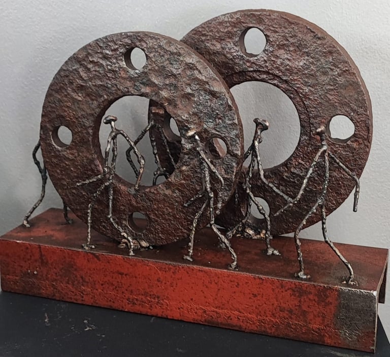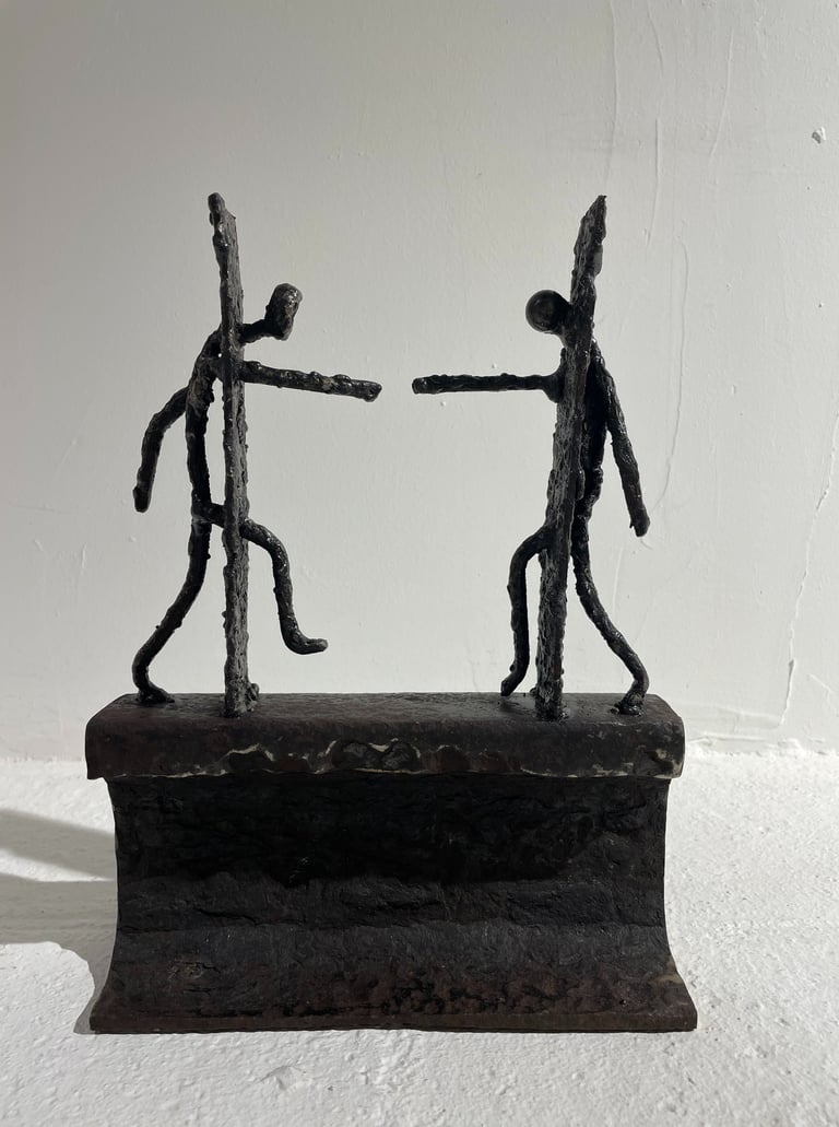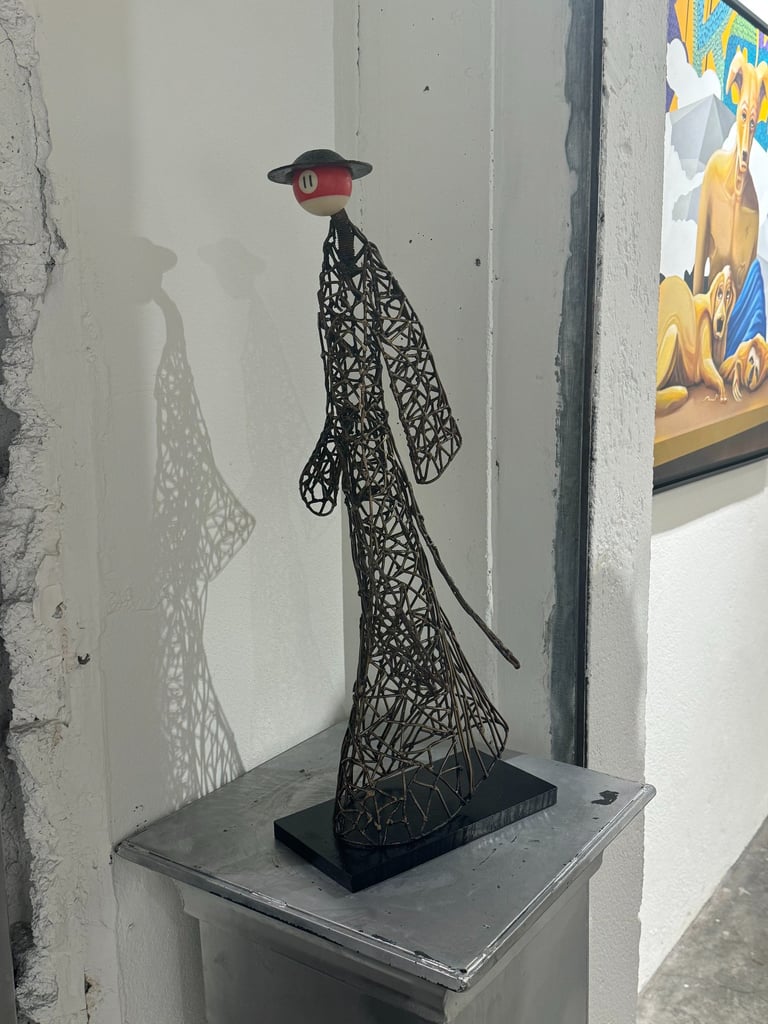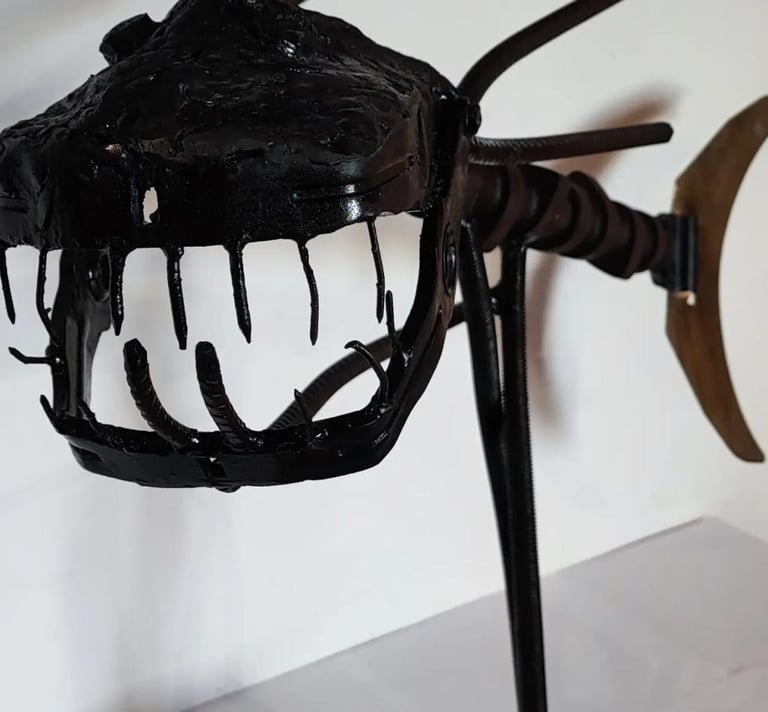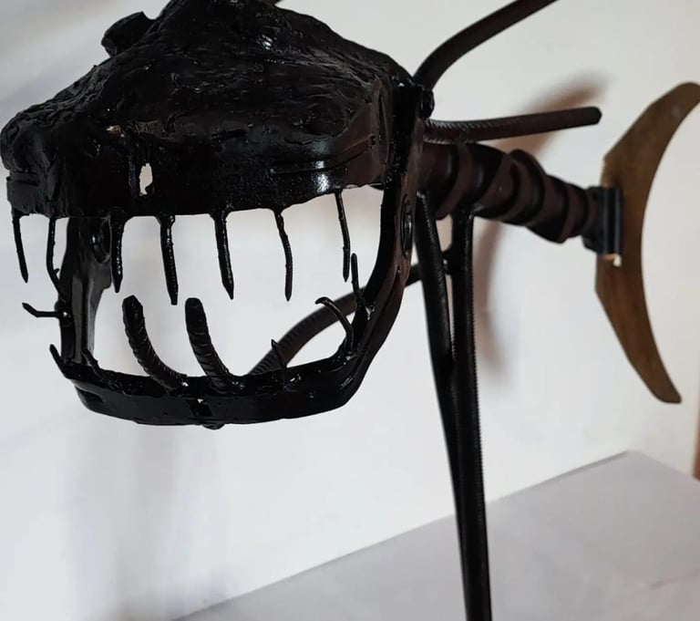 David Nativel est un autodidacte. L’artiste élevé aux côtés d’un grand-père inventeur, ferronnier et mécanicien, développe une véritable passion pour le travail de ces matériaux. Initié à la soudure par Pierre-Paul Bellemene à l’âge de 17 ans, il apprend à mêler les pièces récupérées dans des garages ou abandonnées dans la rue aux morceaux de bois trouvés sur la plage pour créer des objets insolites aux formes raides ou déstructurées. Lampes, personnages scènes de vie… ces sculptures sont toutes des pièces uniques.