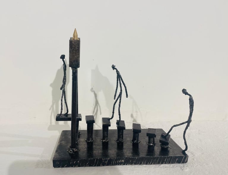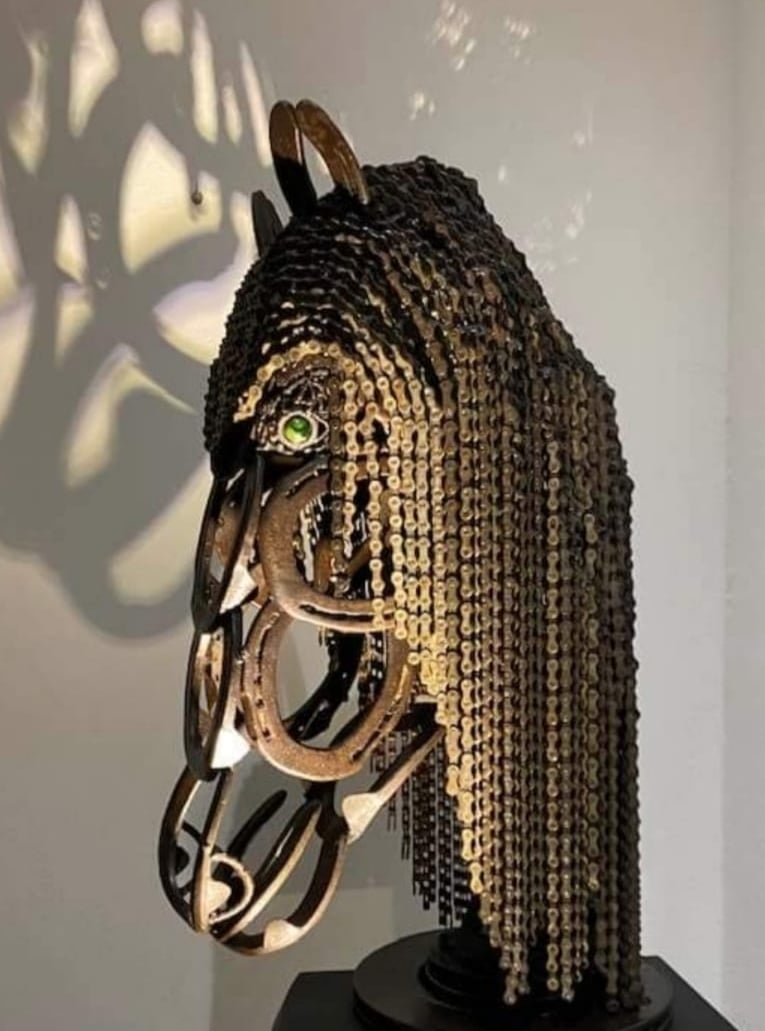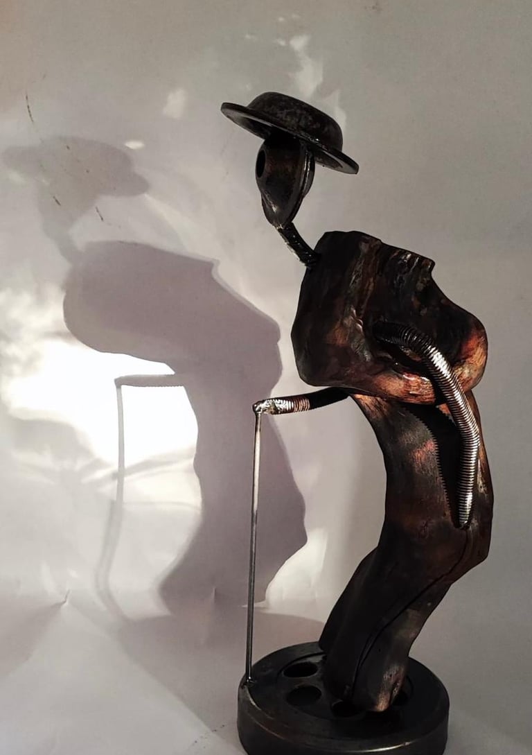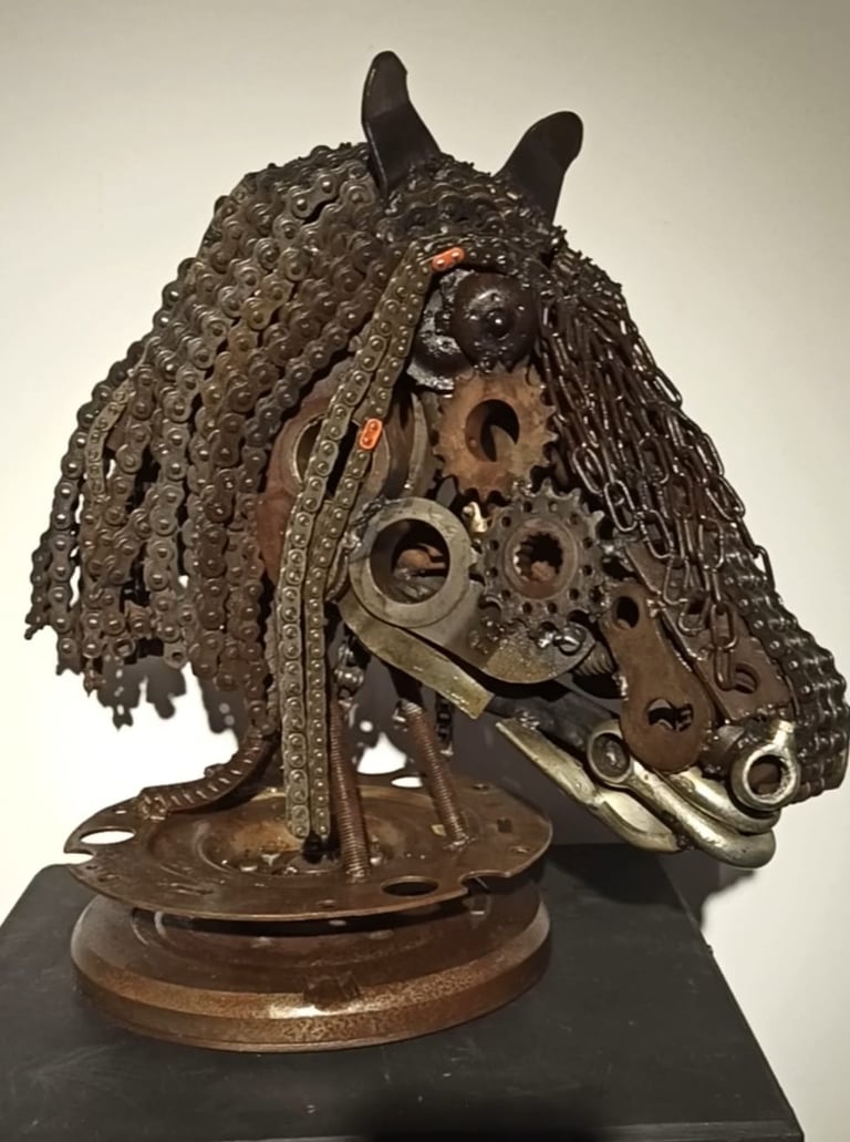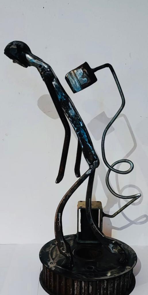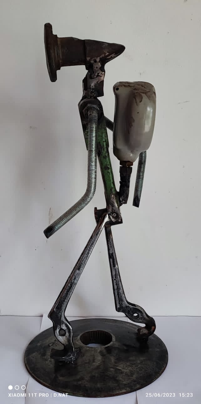 L’artiste est révolté par l’obsolescence programmée, source de pénurie et de gaspillage. Redonner une allure, une nouvelle vie à ces pièces issues de l’industrie stimule son imagination et nourrit son travail aujourd’hui reconnu à l’international.