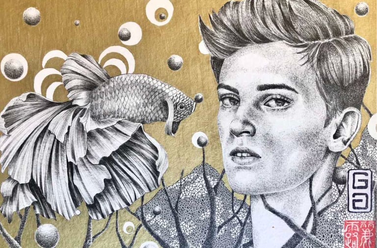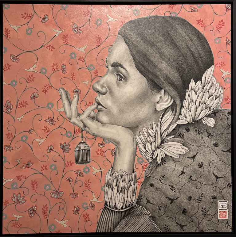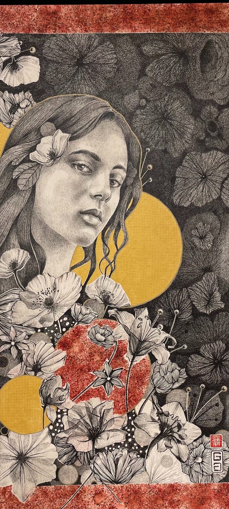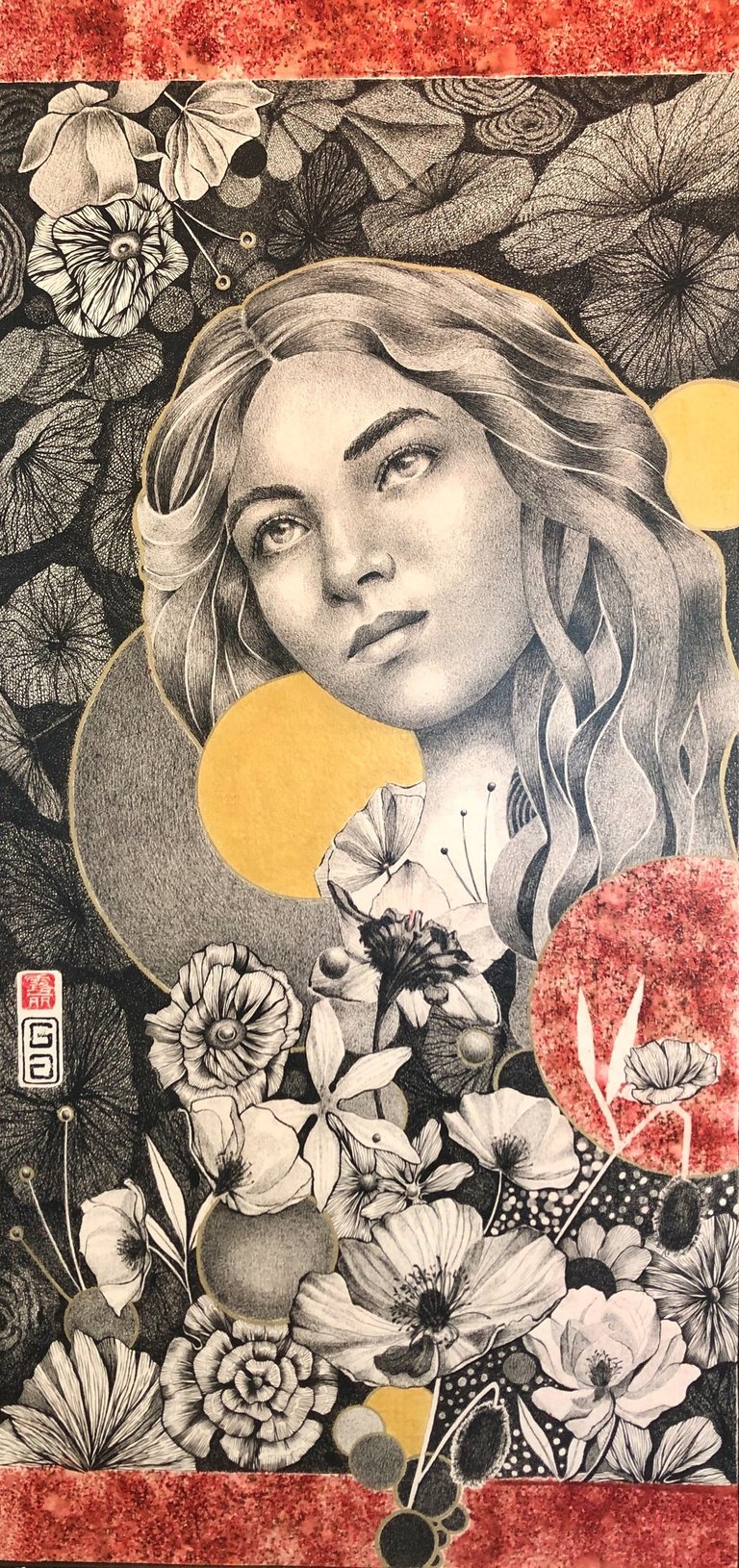Il y a 16 ans, Géraldine pose ses valises à La Réunion où elle travaille et expose désormais. Après des études de Lettres, de nombreux voyages pour assouvir une grande curiosité (Chine, l'Europe, Asie centrale …) c’est une rencontre artistique avec la peintre Florence Vitry qui marque sa décision de se consacrer à plein temps au dessin. Autodidacte, elle explore les techniques comme elle parcourt le monde, à tâtons et expérimente de nouvelles couleurs, lignes graphiques afin d’affiner son trait au stylo.
