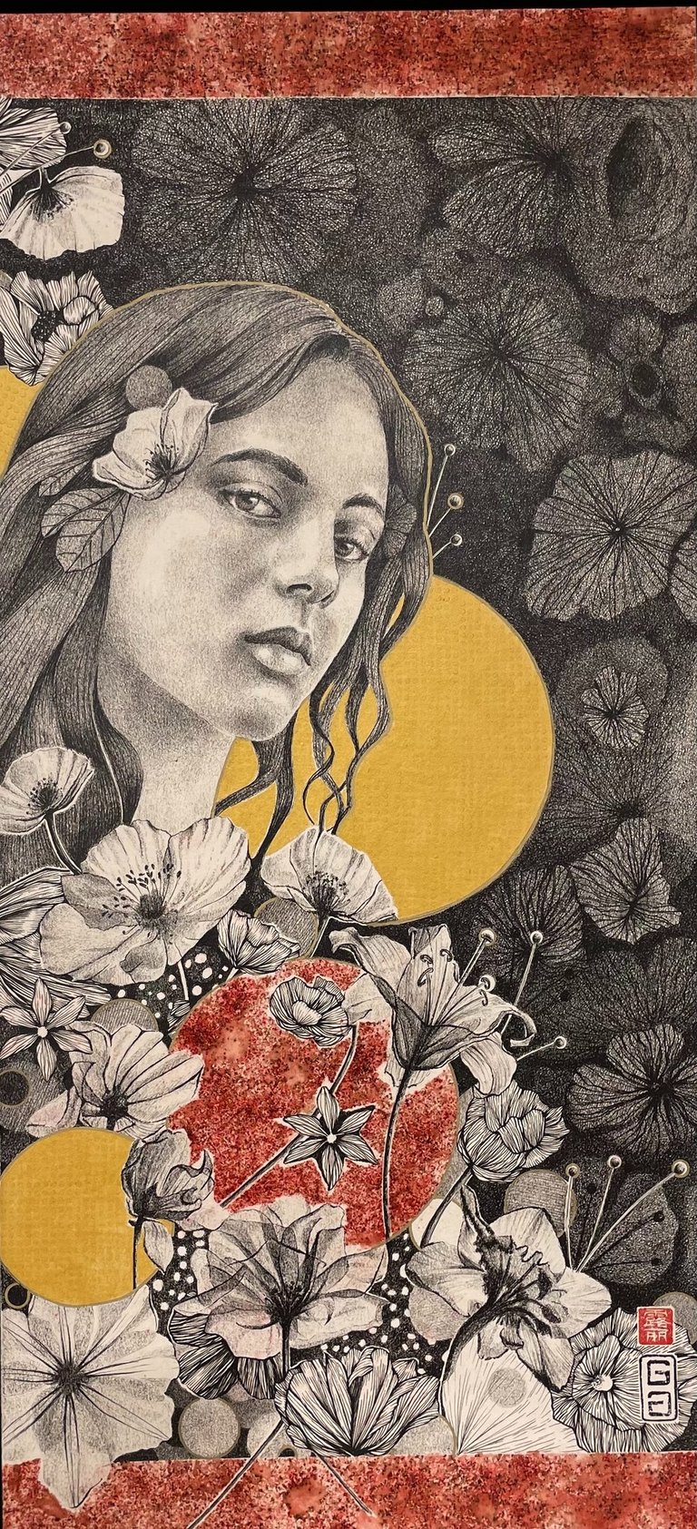 Tirage d'art en mode tableau (redoré à la main) / 33x43cm