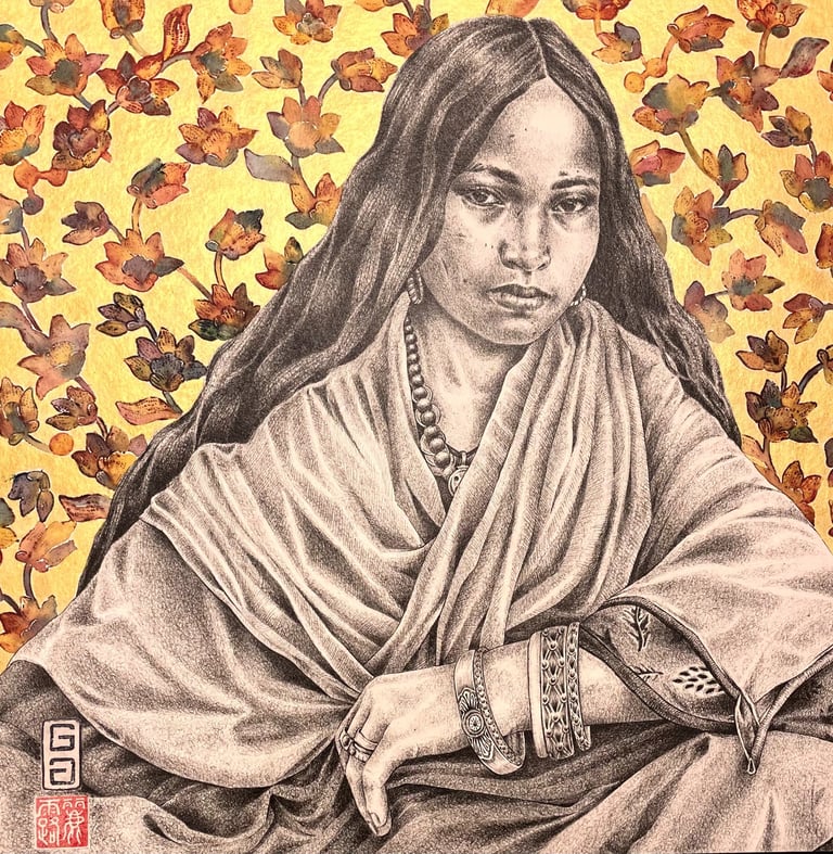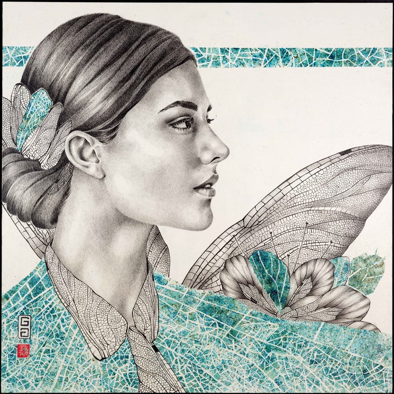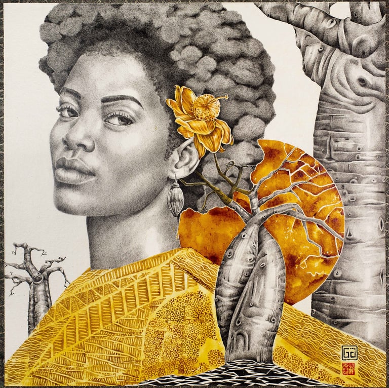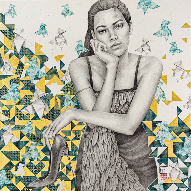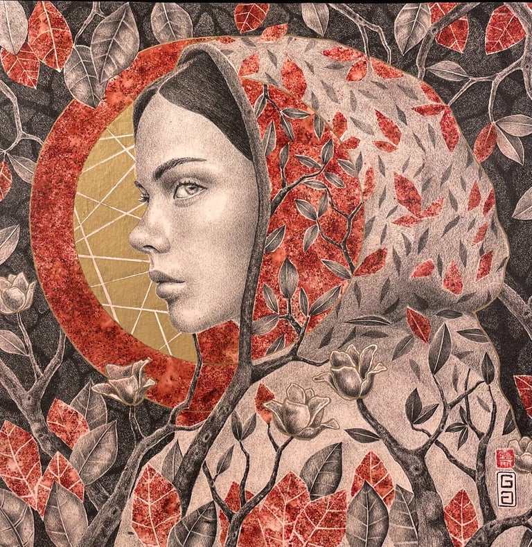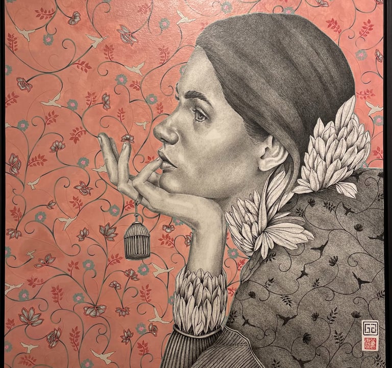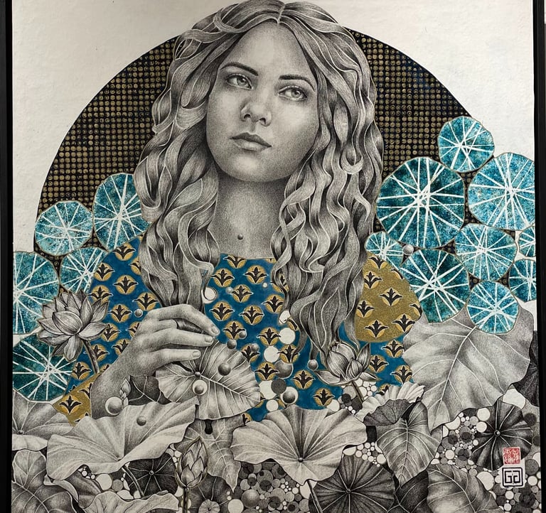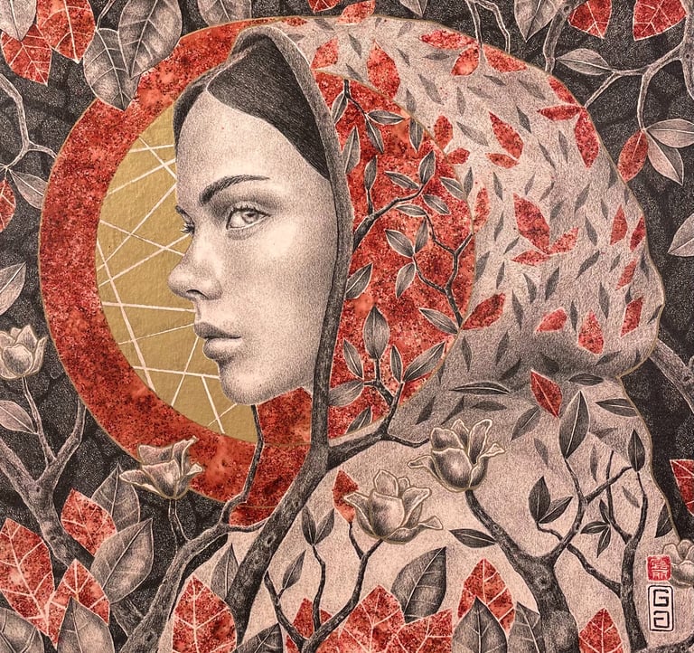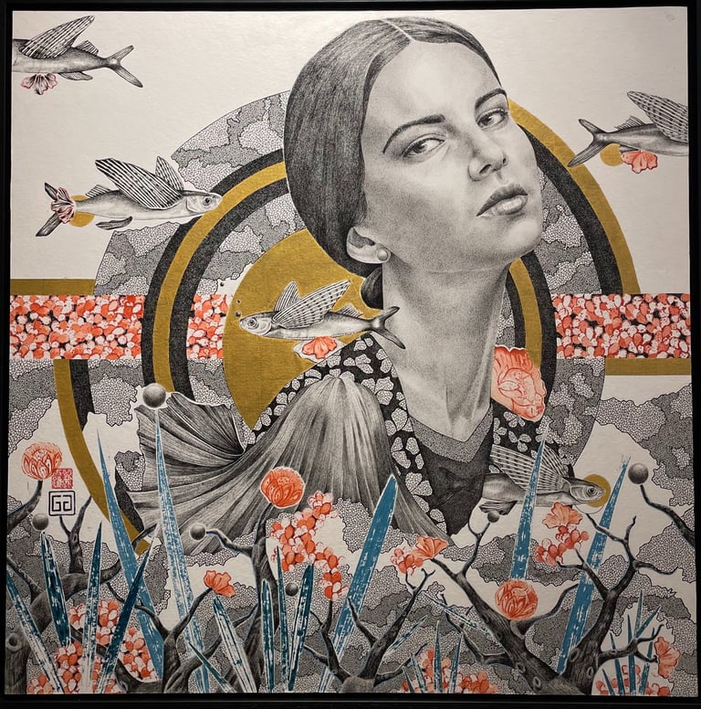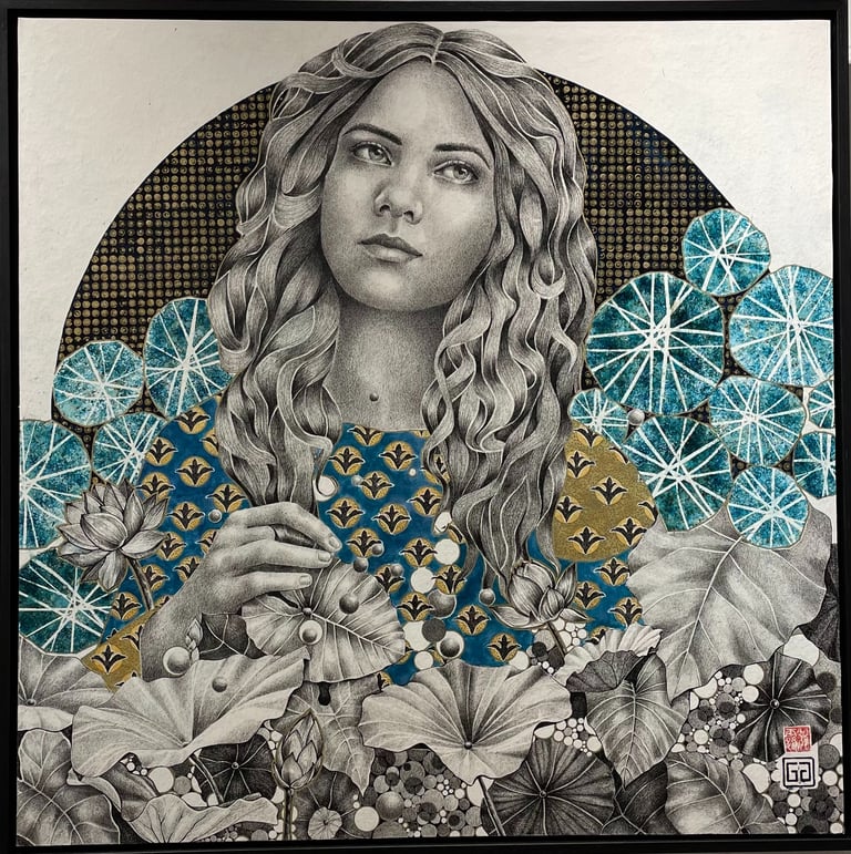 Tirage d'art en mode tableau (redoré à la main) / 43x43cm
