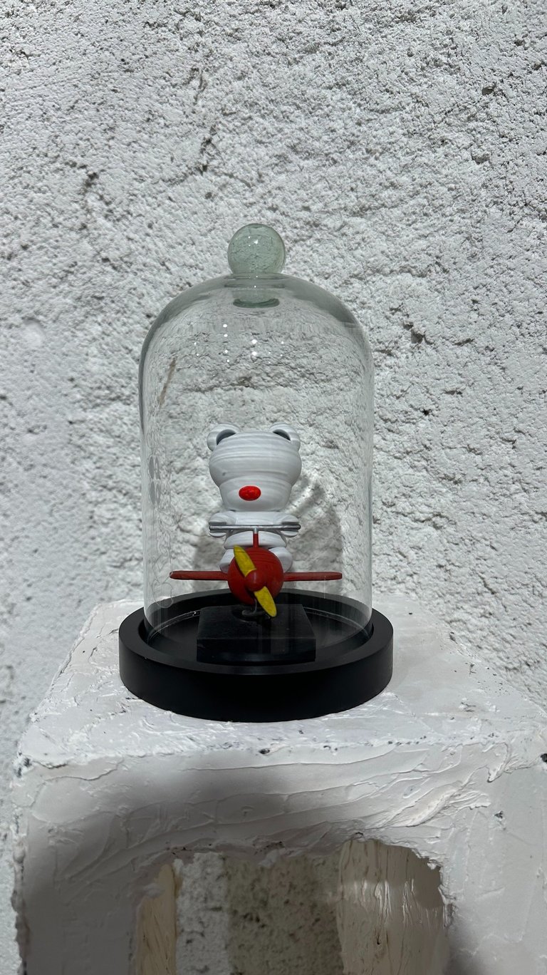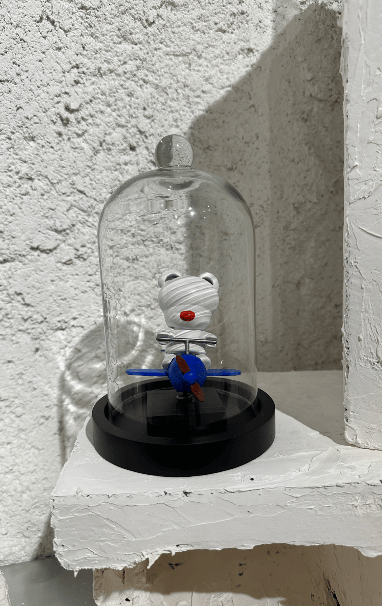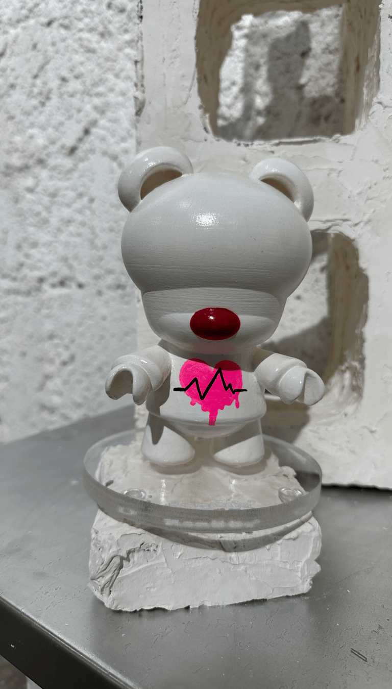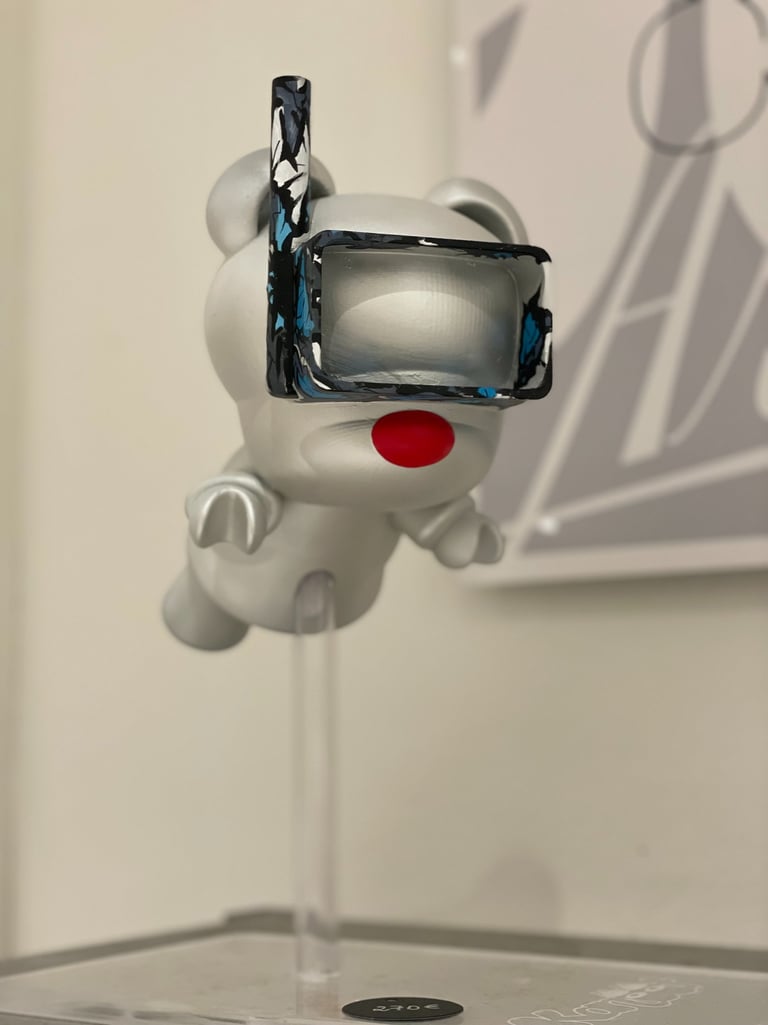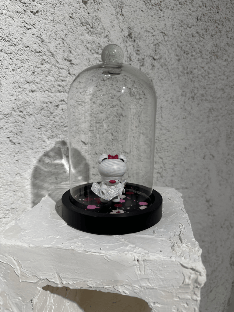 Son attachement aux personnages de BD, dessins animés, POP, décalé nous offre une vision nostalgique dans la société actuelle telle qu'elle est ,se considérant comme un Geekartist et Toyartist.