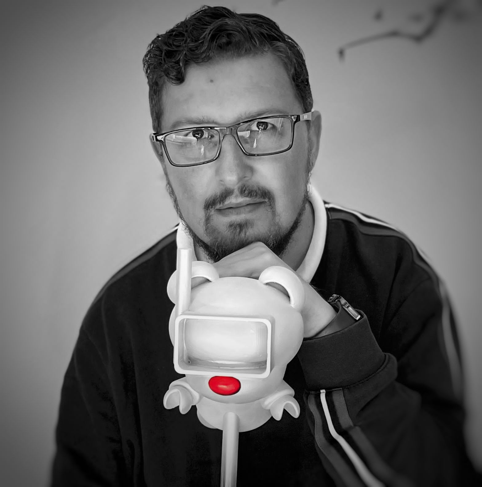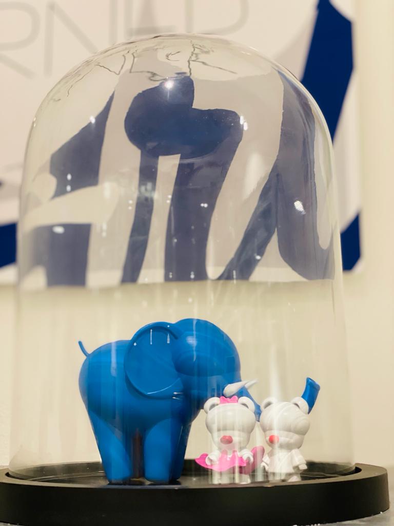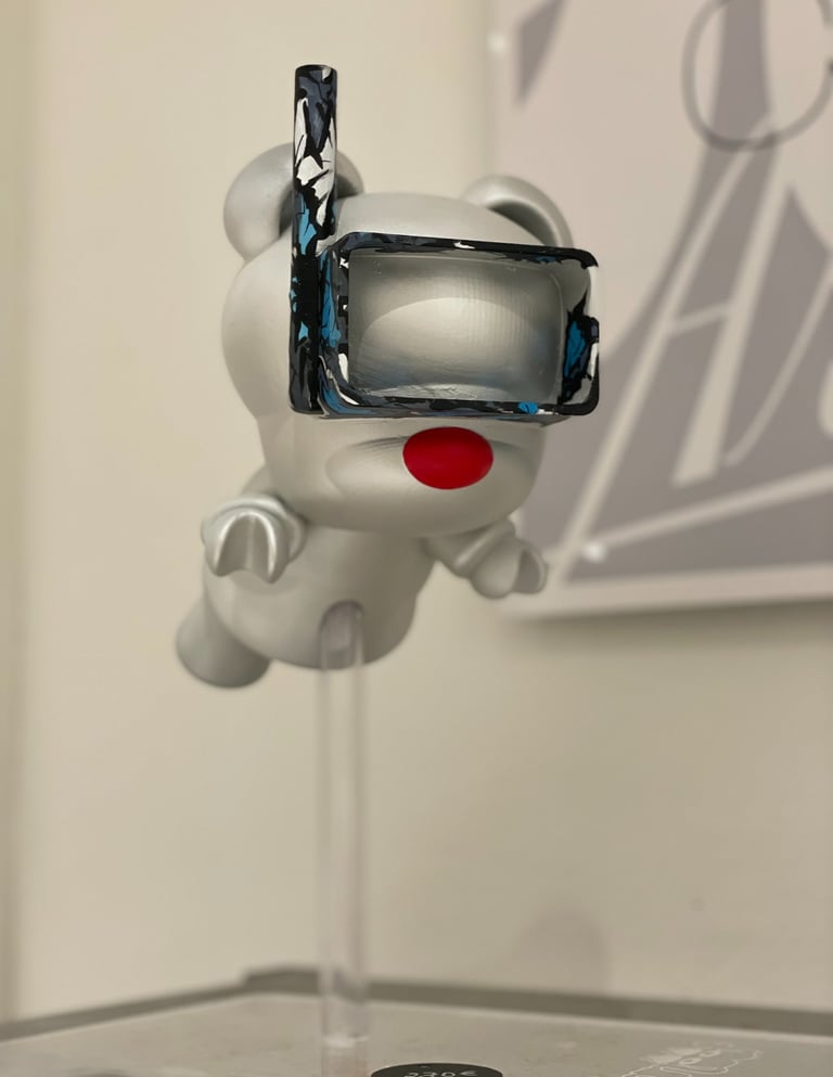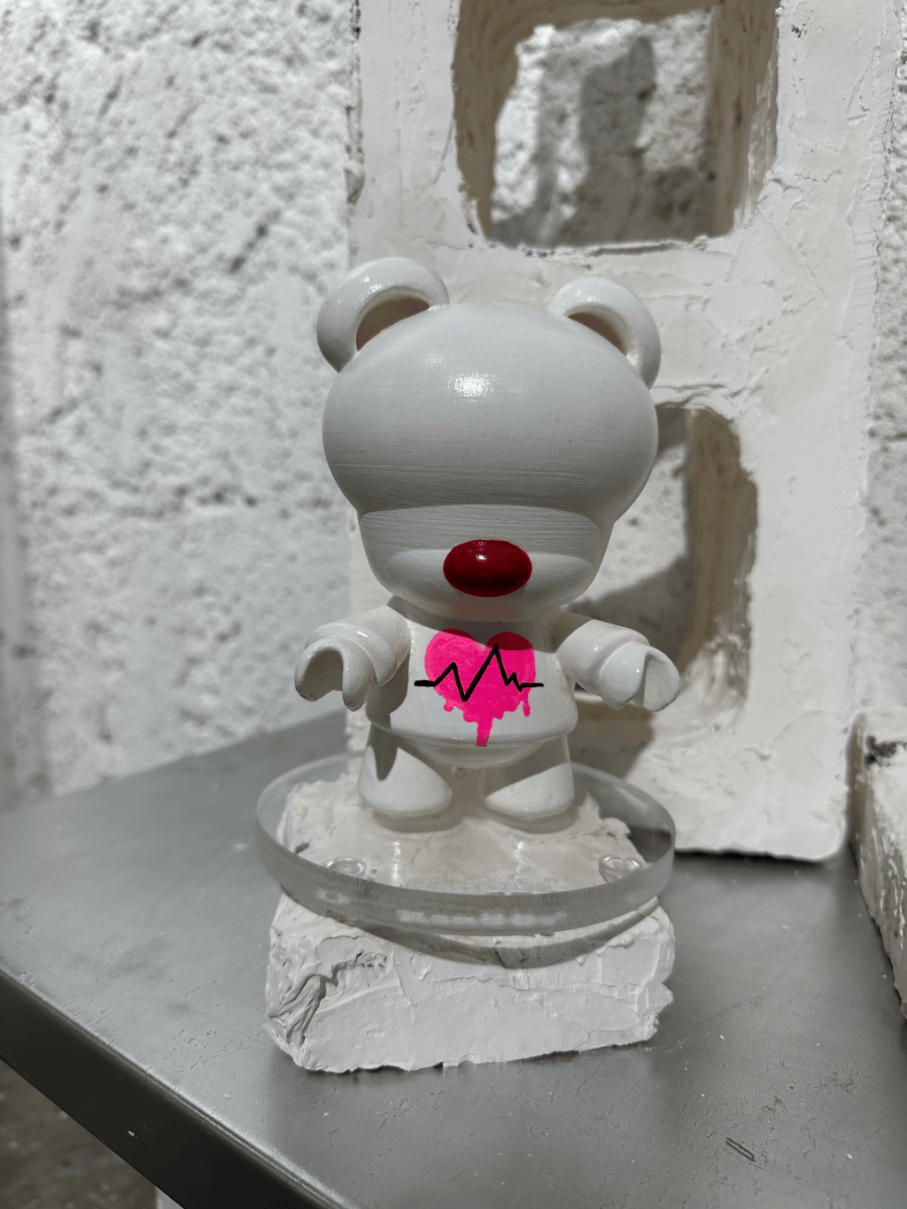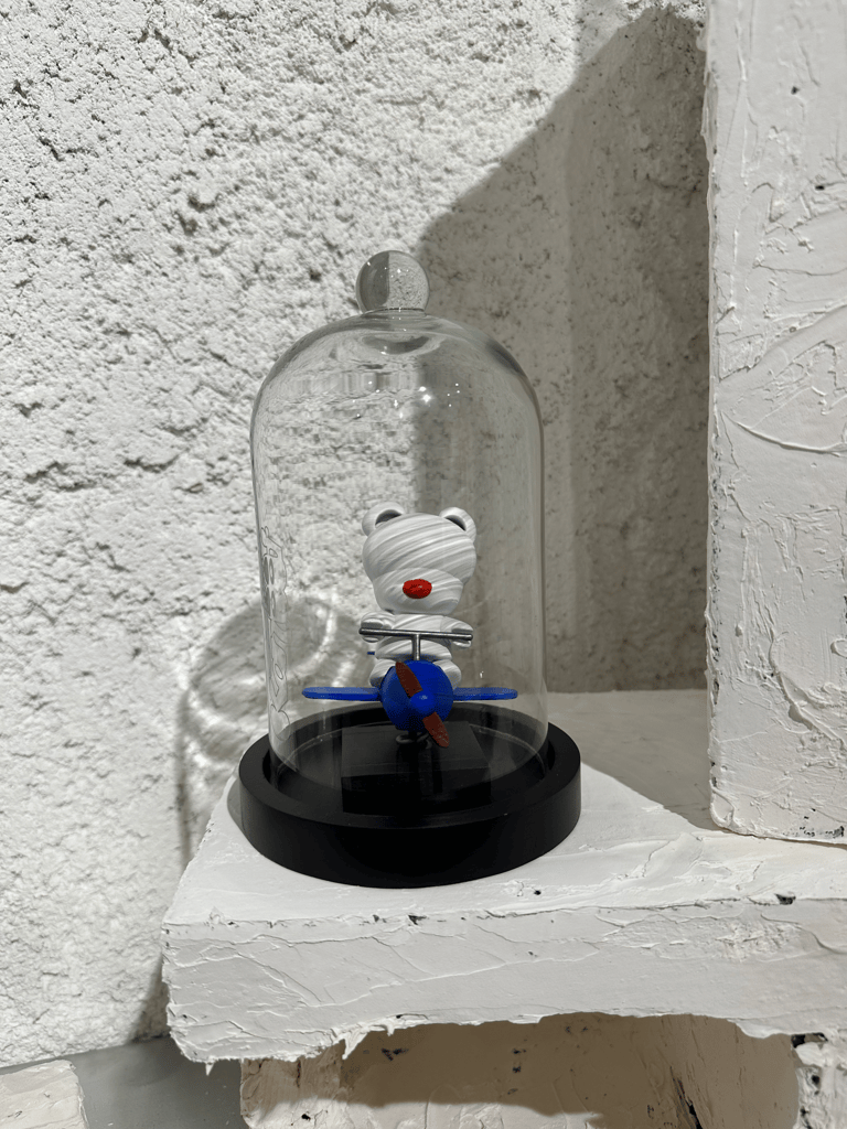 Son attachement aux personnages de BD, dessins animés, POP, décalé nous offre une vision nostalgique dans la société actuelle telle qu'elle est ,se considérant comme un Geekartist et Toyartist.