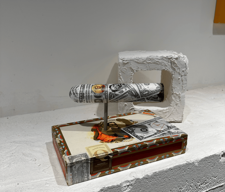 Elève du très respecté et reconnu Robert Labor Pierre affûte son style et s’amuse. l’art est un terrain de jeu qui lui offre de garder son âme d’enfant ; et cela tombe bien. Ses connaissances en Infographie et modélisation lui ouvrent des portes de l’univers Toy Art 3D. Il expose désormais des panneaux de signalisation abîmés, retapés sur lesquels s’invitent BartSimpson, Goldorak spiderman … des icônes des années 80-2000.